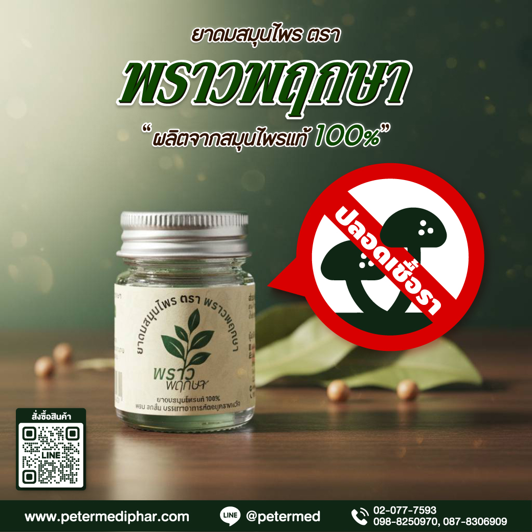 พราวพฤกษา ยาดมสมุนไพร 100%ส่วนประกอบน้ำมันหอมระเหย กระวาน กานพลู ดอกจัน ฝาง พริกหอม